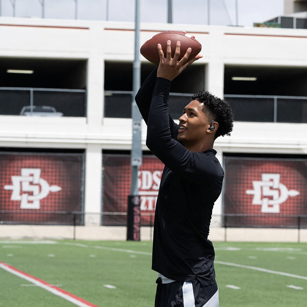 使用 Be Aware Audio 在跑步或行走時聆聽周圍環境的聲音,確保安全聆聽。當您想讓環境噪音進入時打開它,或關閉它以便只聽音樂放鬆身心。 JBuds Sport ANC 專為您設計,可讓噪音進入或讓您在聆聽耳機的同時進行交談。